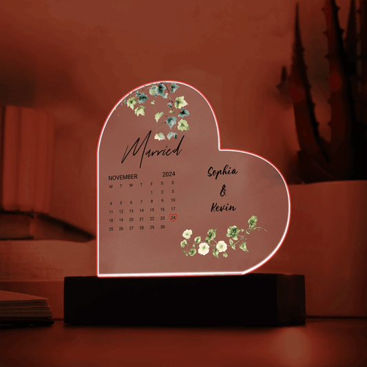 Celebrate Love: Custom Heart-Shaped Acrylic Plaque with LED Lighting, Personalized Gift For Couples, Wedding Gift, Valentine's Day Gift for Her, Anniversary Gift for Couple