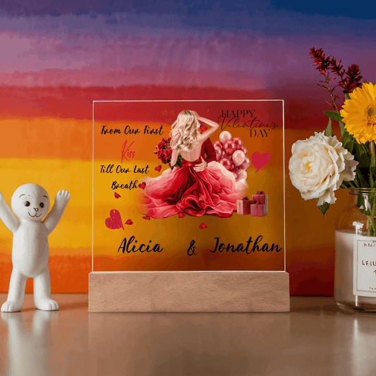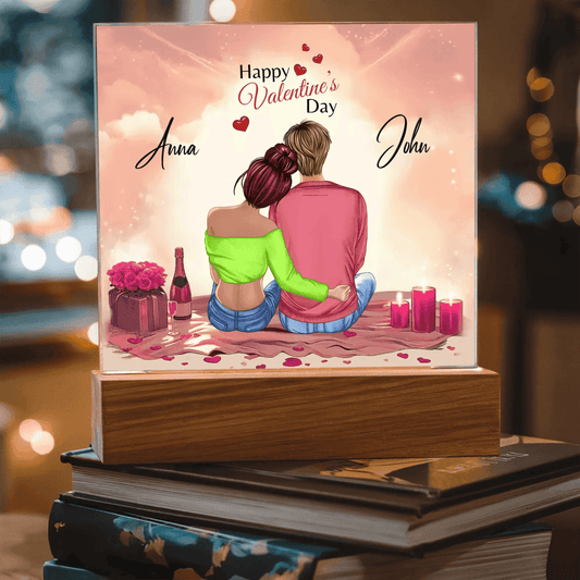Custom Square Acrylic Plaque with LED Light – Perfect Valentine's Day Gift for Him & Her, Valentine Day Gift For Couples