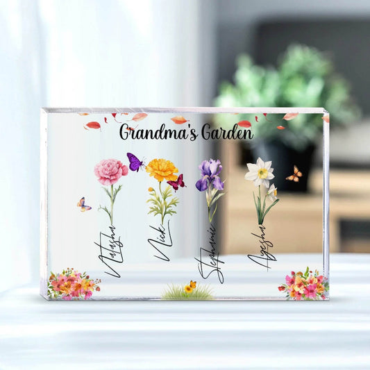 Grandma’s Garden – Personalized Acrylic Plaque with Grandkids’ Names & Flowers