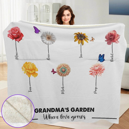Gift for Grandma – Personalized Sherpa Fleece Blanket with Grandkids’ Names