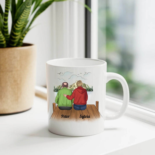 Custom Ceramic Mug with Heartwarming Print of Elderly Couple and Dog – Perfect Gift for Coffee and Tea Lovers