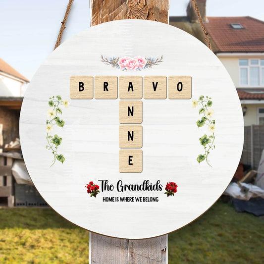 Personalized Round Wood Sign – Grandkids Scribble Name Design – Custom Rustic Home Décor Gift | Gift for Grandparents