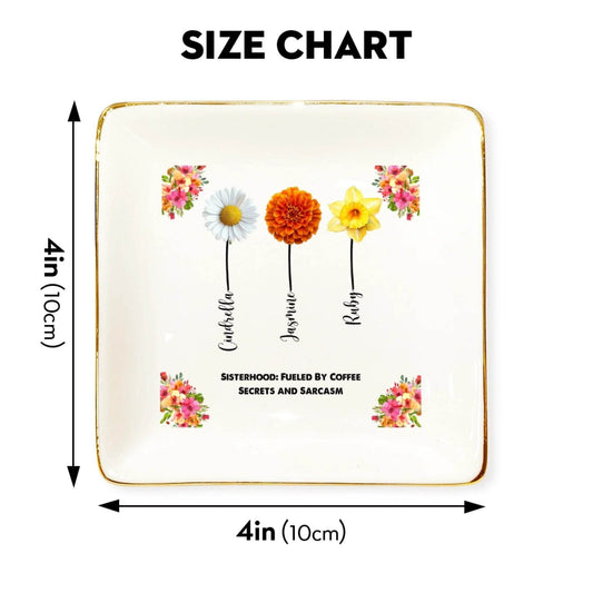 Personalized Sister Ring Dish – Custom Flowers, Names & Quotes | Unique Gift for Sisters