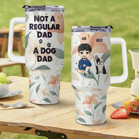 The Dog Father 40oz Tumbler — Personalised Cartoon Avatar with Dog Name, Build & Skin Tone | Unique Dog Dad Gift